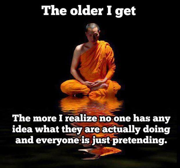 هذه الفكرة تتردد كثيرا في ثقافتنا المعاصرة، خاصة في العبارات المنتشرة على الإنترنت، مثل: “كلما تقدمت في العمر، أدركت أكثر أن لا أحد يعرف حقًا ما الذي يفعله، والجميع فقط يتظاهر بذلك.”
