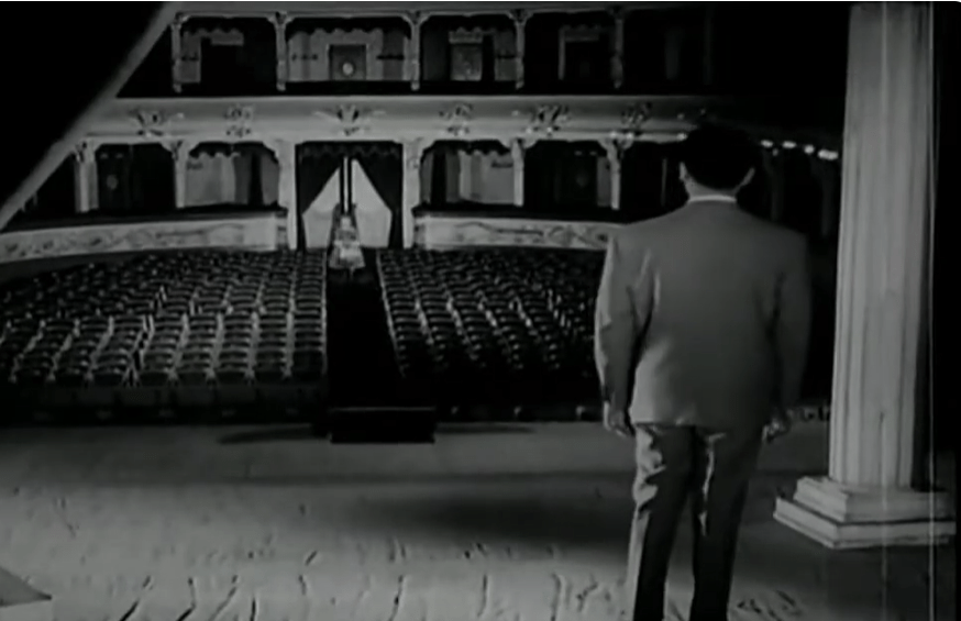في فيلم الخطايا، يقف عبد الحليم حافظ على مسرح فارغ يغني لنادية لطفي التي تكتفي بالصمت: