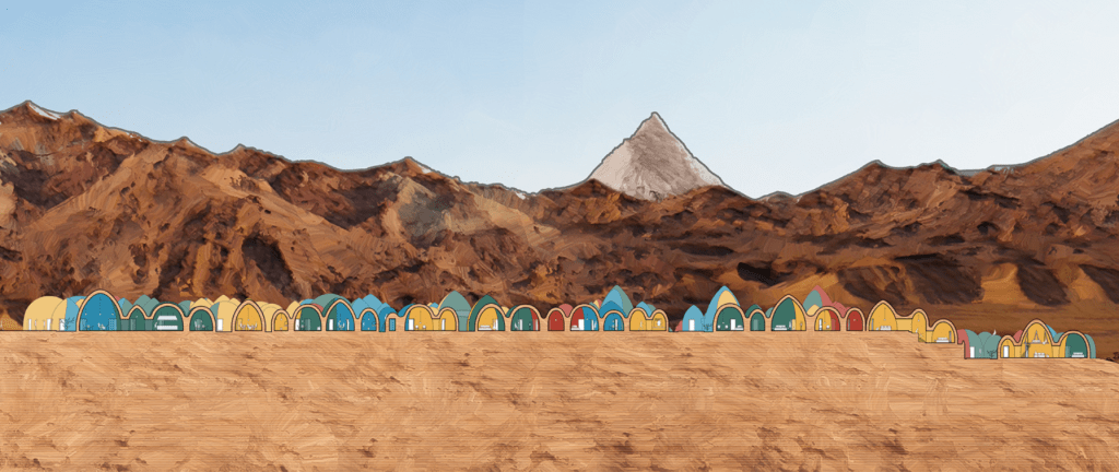 وفي جزيرة هرمز، على ضفة منسية من الجغرافيا الإيرانية، نبتت مئتا قبة ترابية كأنها فقاعات زمن طافية، أو سطر من لغة بدائية لم تفك رموزها بعد. لا توجد واجهات تقليدية ولا أبواب تزهو بأهميتها، بل فقط عناصر متكررة تشبه بعضها ولا تتطابق. إنها القباب التي كونت مشروع Majara Residence الذي أنجزته ZAV Architects سنة 2020 مستخدمين تقنية Superadobe (وهي أسلوب بنائي طوره المعماري الإيراني الأمريكي نادر خليلي يقوم على رص أكياس مملوءة بالتربة كما لو كانت خرزا، وتستخدم لبناء القباب بطريقة عضوية ومنخفضة التكلفة) وموزعين الفراغات كما لو أن المعجم المعماري انقسم إلى مقاطع صوتية ثم أعيد تركيبه.