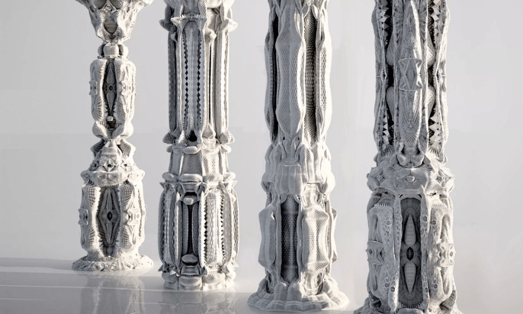 أحد أبرز التطبيقات المعمارية لهذا المنطق هو مشروع Subdivided Columns للمعماري مايكل هانسماير، حيث لم يصمم شكل الأعمدة يدويا، بل تركت لتتولد خوارزميا عبر عمليات حسابية تحاكي النمو الطبيعي، مستندة إلى نفس المبادئ التي تقترحها أنماط تورينغ في نمو الأنماط العضوية.
