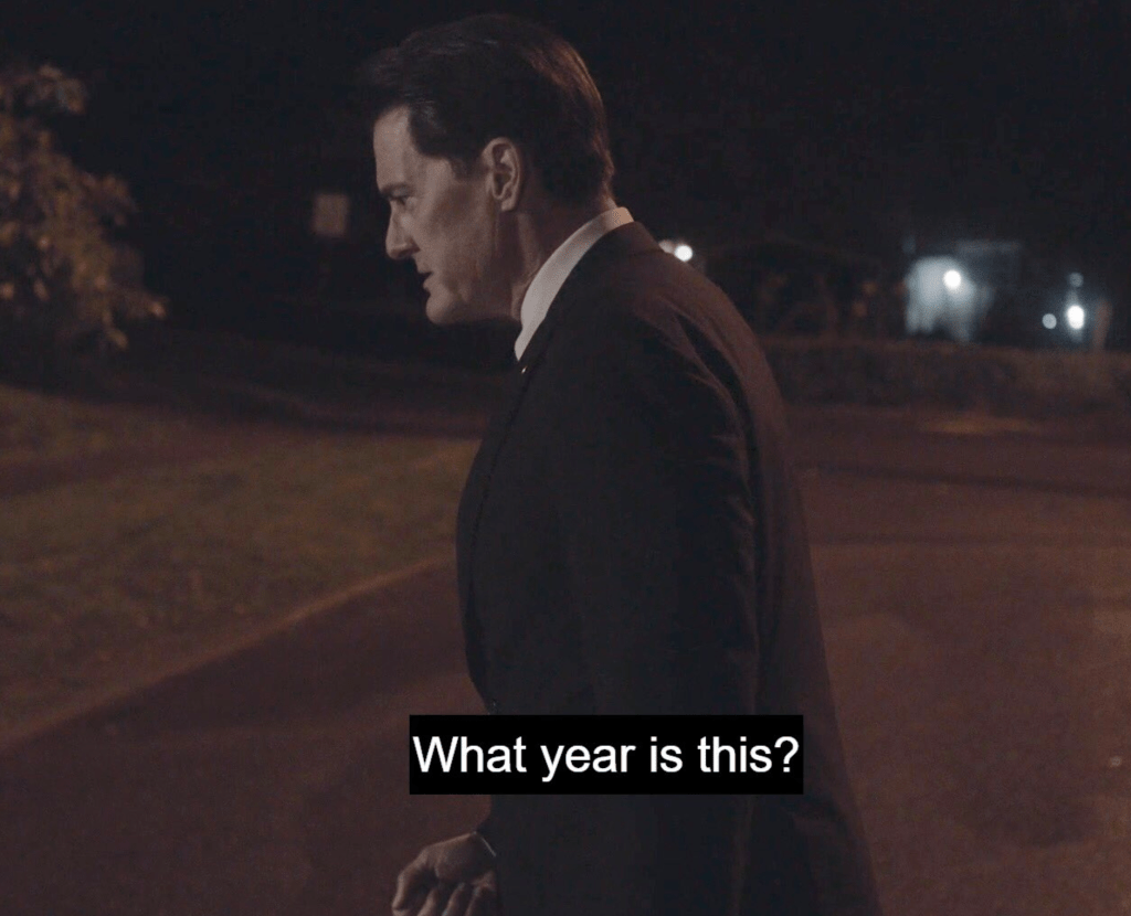 في المشهد الأخير من The Return، يصل كوبر أخيرا. يصل متأخرا، كعادته الكبرى. يقف أمام البيت مع كاري بيدج، التي هي لورا وليست لورا في الوقت نفسه. ثم يسأل السؤال الذي لا يأتي في وقته أبدا: